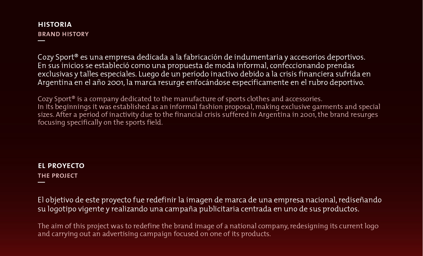 Rediseño de identidad visual para CozySport, marca de indumentaria y accesorios deportivos. New visual identity for CozySport, a sports clothes and accesories brand.