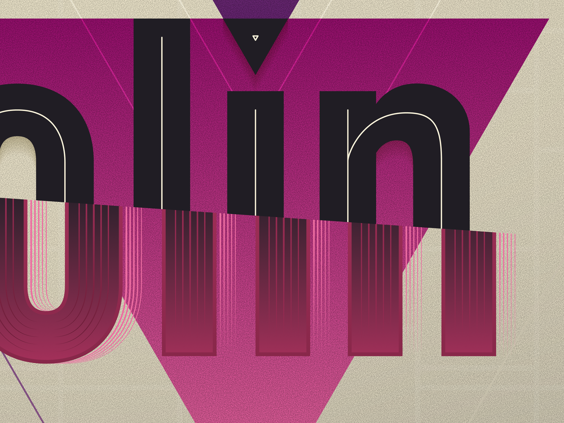 The composition is structured around two inverted triangles, a form traditionally associated with femininity, which interact with each other. These shapes represent both the two protagonists and the two families connected by the central conflict of the story. Their intersection creates a third element, which becomes the accent mark on the “í” in violín, reinforcing the idea that something new emerges from their relationship, charged with moral tension.