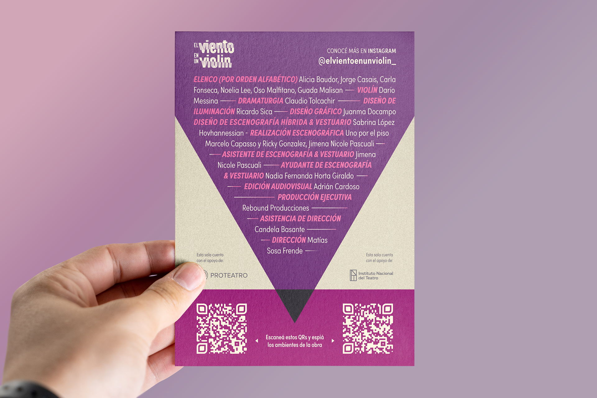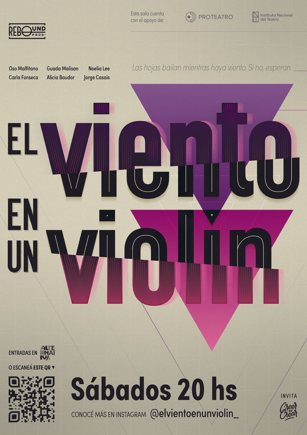"El viento en un violín" is a play written by Claudio Tolcachir that has had a long and significant presence in Argentine theatre. In 2025, Rebound Productions presented a new version at Patio de Actores (Buenos Aires), with a renewed staging, a new director and a different cast. The challenge was to create a distinctive visual identity that clearly separated this version from previous productions while supporting the play’s complex tone without relying on literal imagery.