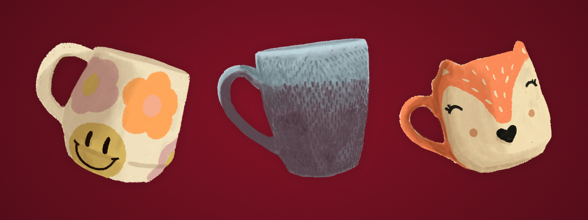 The process began with hand-drawn lettering sketches, understanding that the letterforms needed to act as the emotional voice of the play. The illustrated mugs then appeared as everyday objects present on stage, serving as metaphors for each character. Textures, ornaments, and graphic details inspired by domestic life completed the composition.